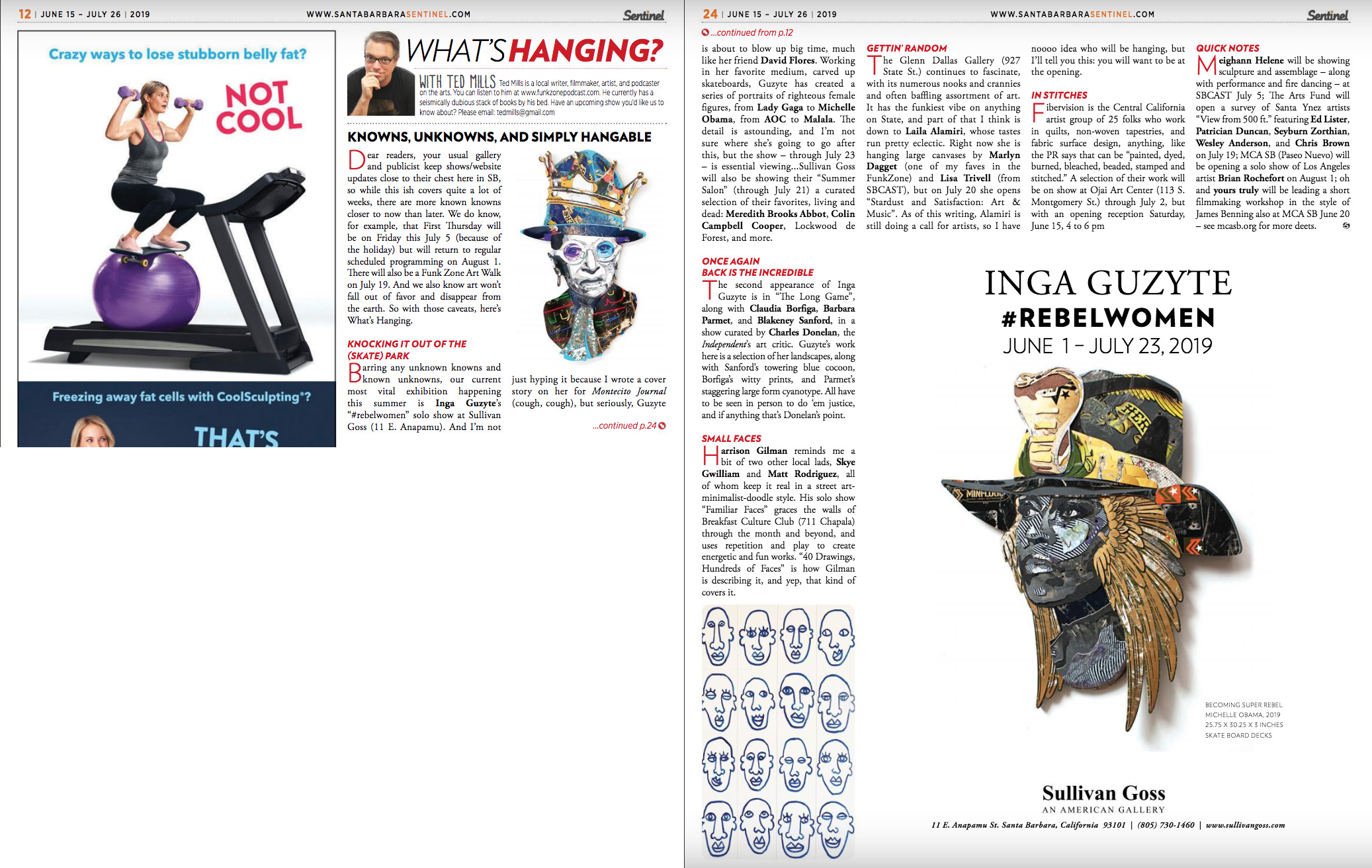 2019 “Knowns, Unknowns, and Simply Hangable” by Ted Mills, Santa Barbara Sentinel, June 15 - July 26, 2019, p. 12
