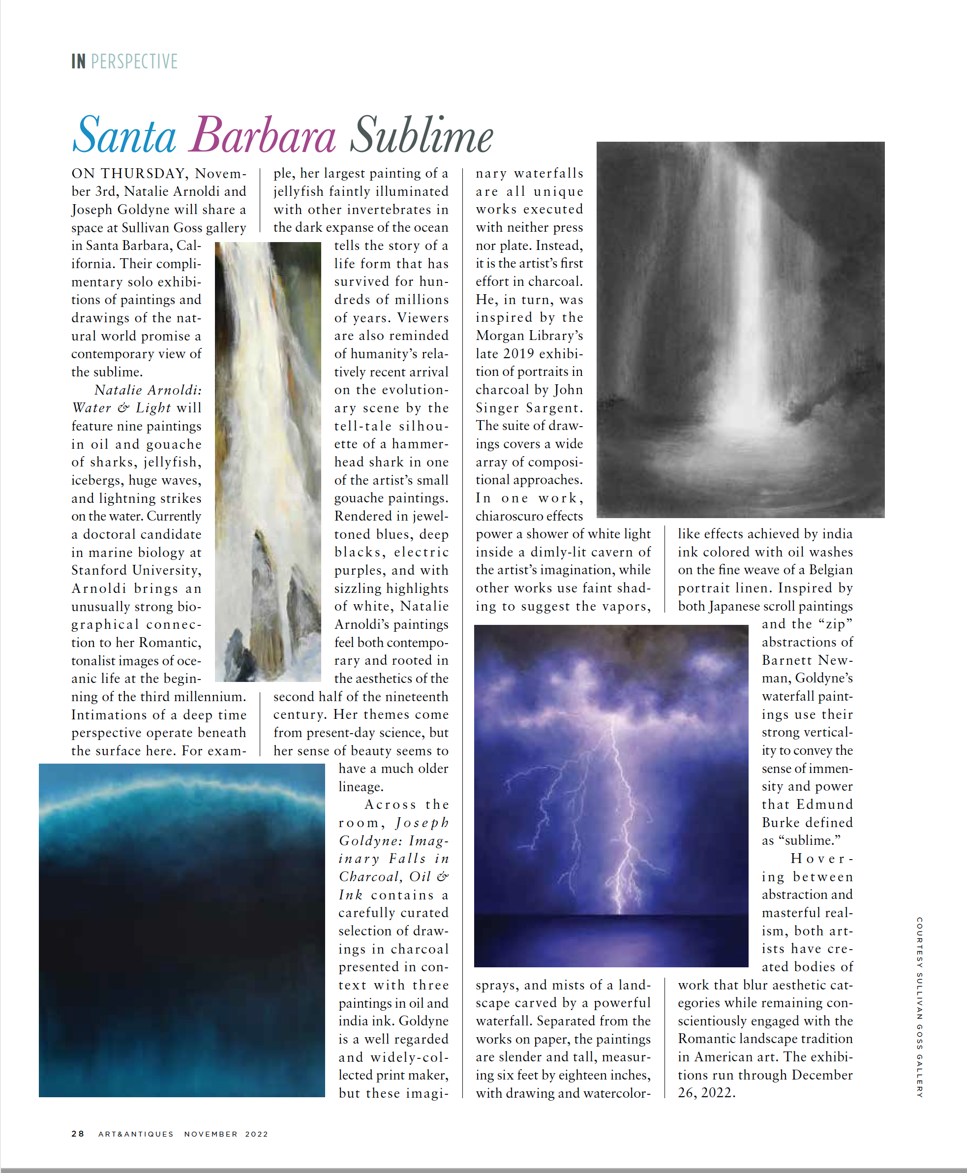 “Imaginary Falls in Charcoal, Ink and Oil,” a solo exhibition by Joseph Goldyne, is on view through Dec. 26 at Sullivan Goss: An American Gallery, 11 E. Anapamu St., Santa Barbara.