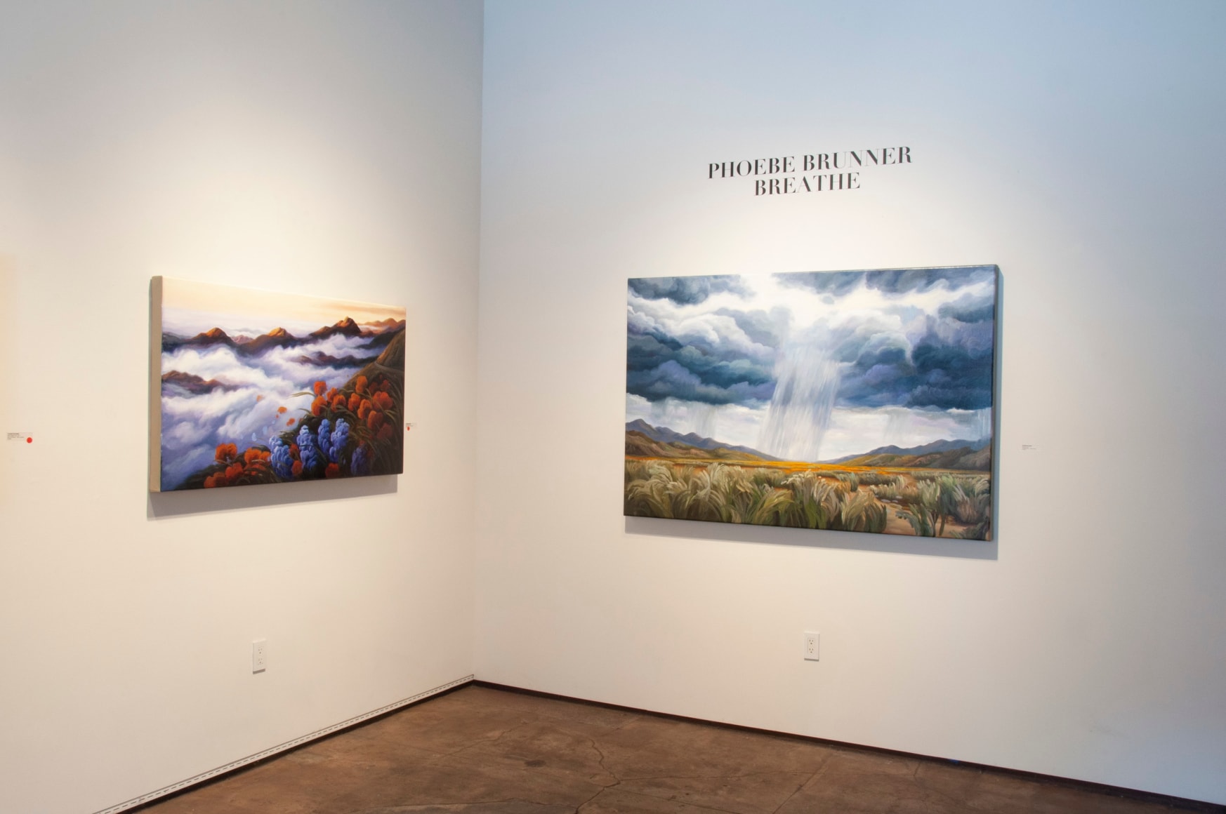 And then there is Phoebe Brunner, the distinctive and dream-dusted landscape painter whose own new work can be seen in the front of this very building, in the form of her show “Breathe.”