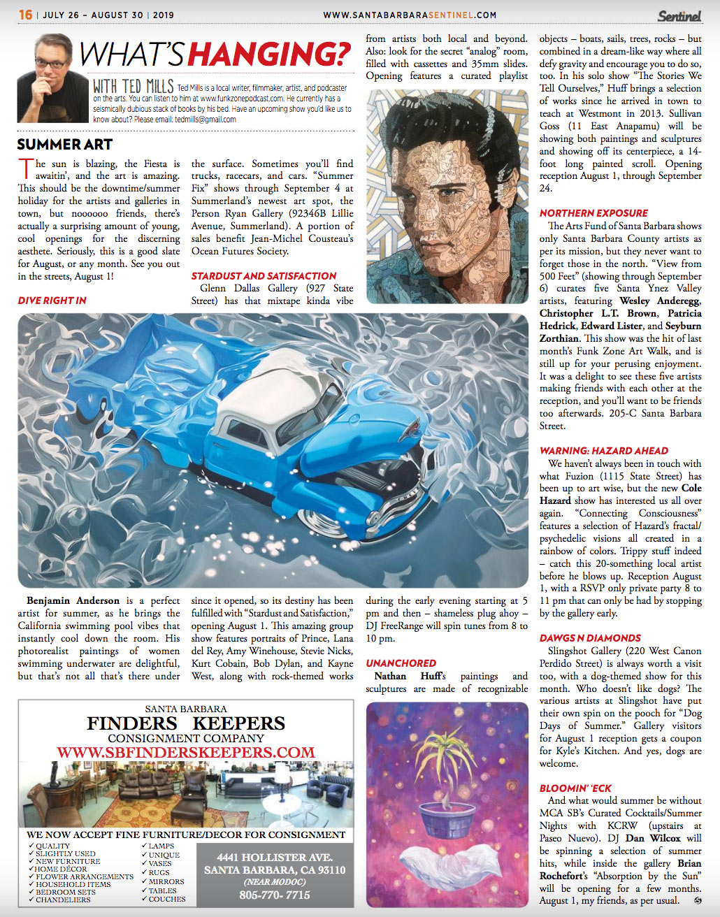 ENGAGINGLY FAMILIAR, YET TEAMING WITH OFF THE WALL DYNAMICS, Nathan Huff: The Stories We Tell Ourselves will be center stage at Sullivan Goss - An American Gallery's 1st Thursday on August 1st from 5 to 8pm.