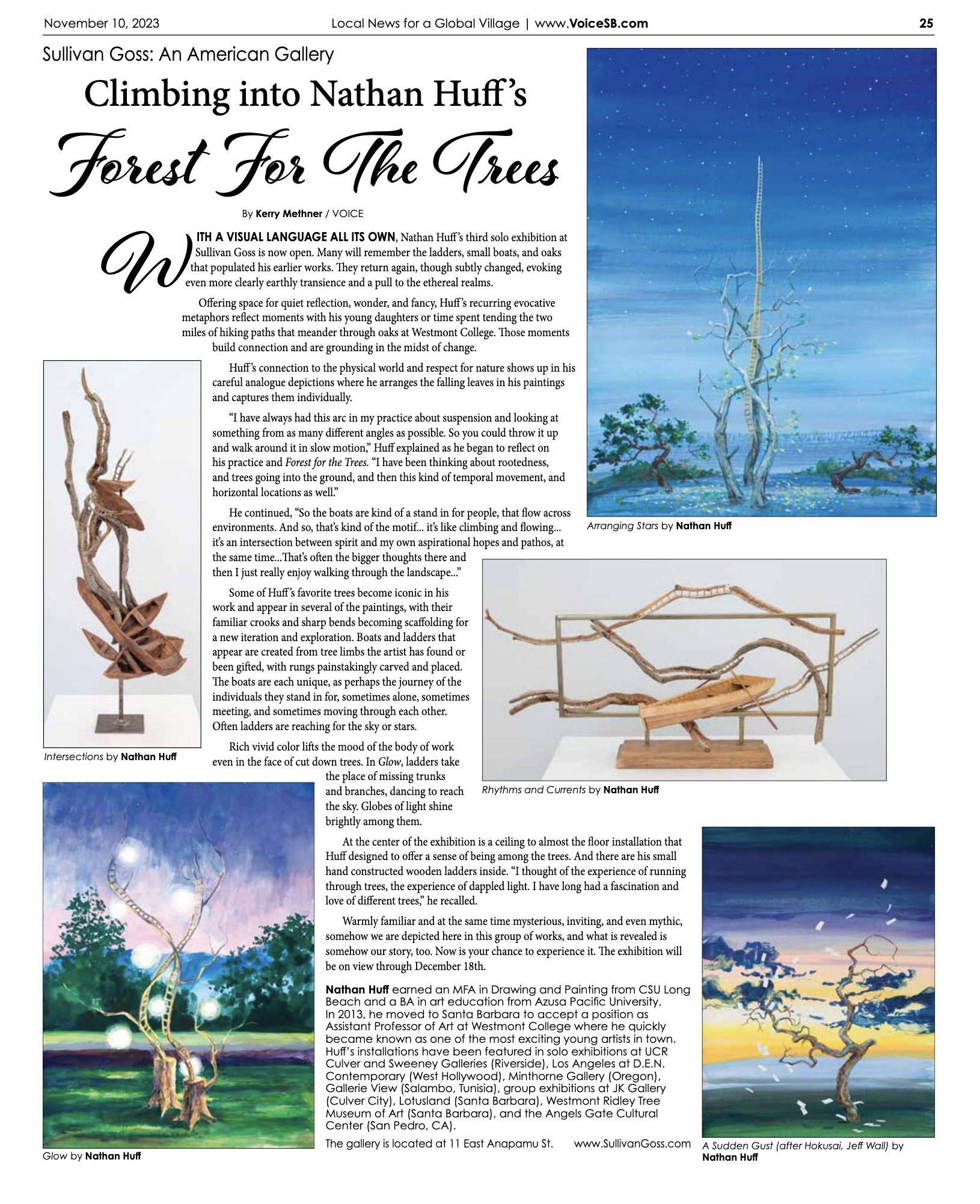 WITH A VISUAL LANGUAGE ALL ITS OWN, Nathan Huff’s third solo exhibition at Sullivan Goss is now open. Many will remember the ladders, small boats, and oaks that populated his earlier works. They return again, though subtly changed, evoking even more clearly earthly transience and a pull to the ethereal realms.