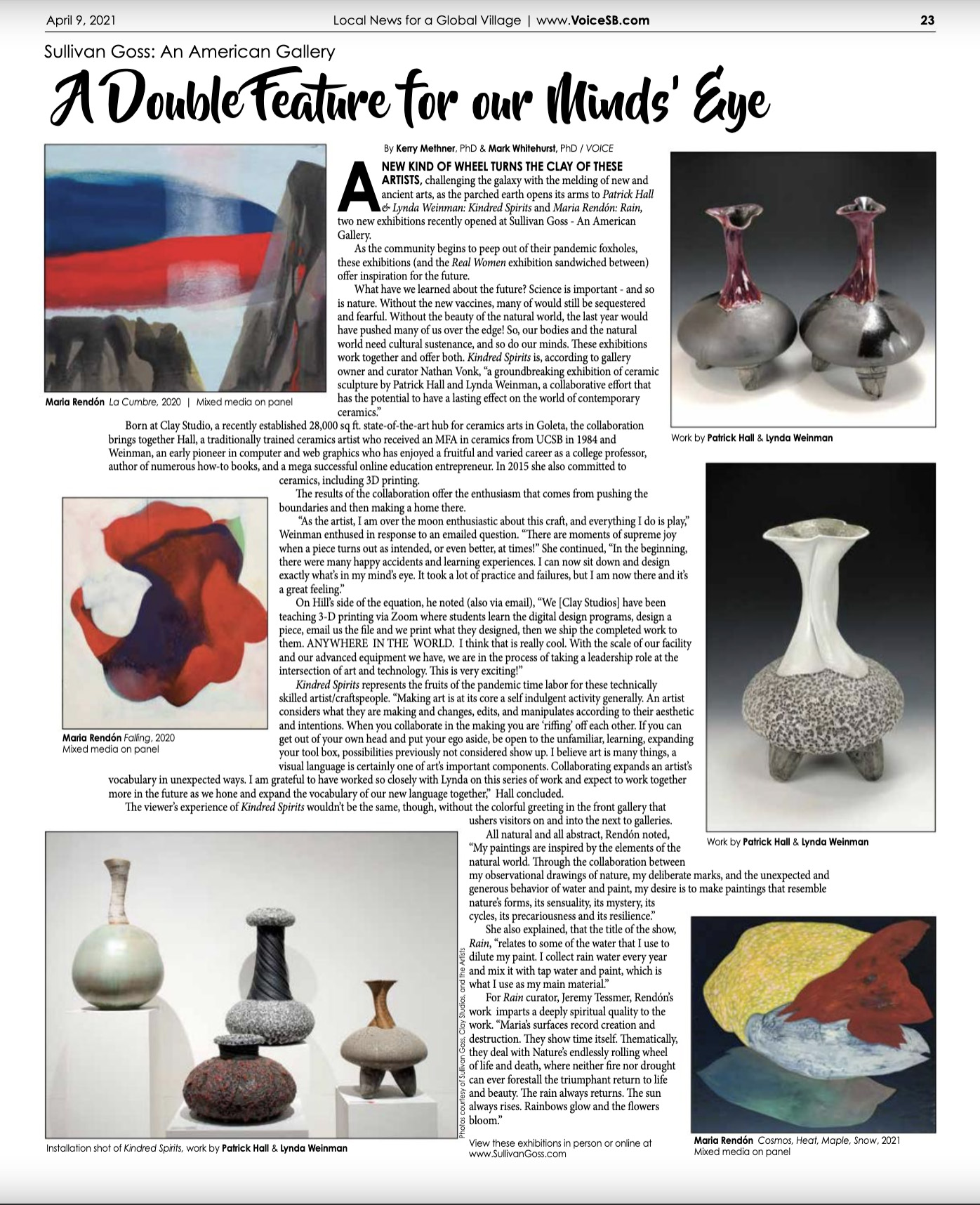 A NEW KIND OF WHEEL TURNS THE CLAY OF THESE ARTISTS, challenging the galaxy with the melding of new and ancient arts, as the parched earth opens its arms to Patrick Hall & Lynda Weinman: Kindred Spirits and Maria Rendón: Rain, two new exhibitions recently opened at Sullivan Goss - An American Gallery.