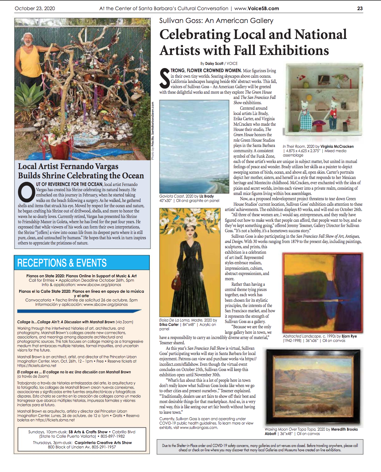 Between October 16 and October 25th, our data is going to San Francisco to participate in the 2020 San Francisco Fall Show of Art, Antiques, and Design, but the art itself is staying in Santa Barbara. We’ll be using the art fair’s web platform on InCollect.com to show a selection of our best – and most regionally appropriate – art in one of the region’s most storied art fairs. We’ll be using our downtown gallery space to give Santa Barbara residents and out of town guests a taste of how we look when we step out. It’s an art fair you don’t have to leave town to attend, and fancy dress is optional but absolutely welcome.